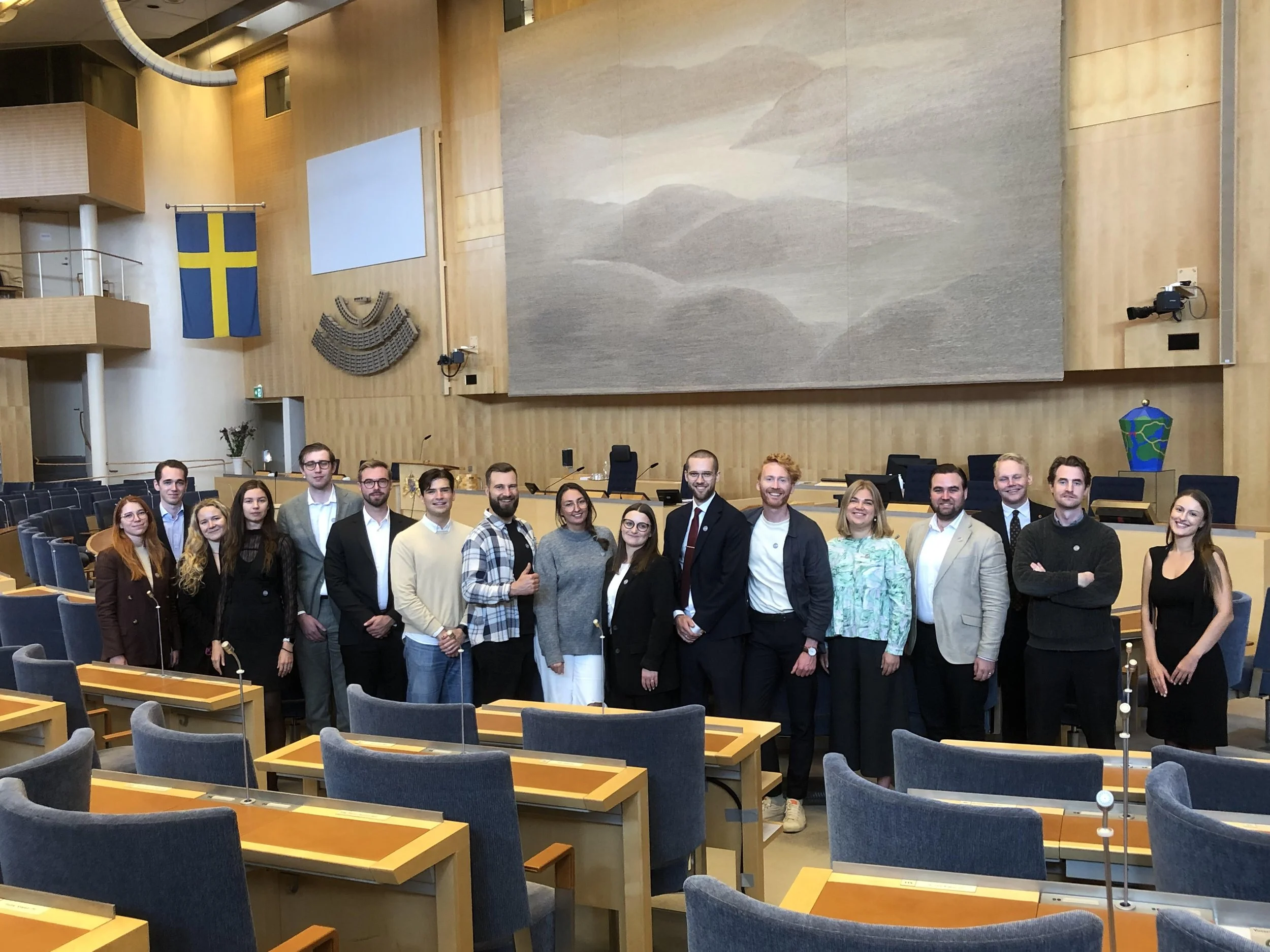 At the Swedish Parliament, Riksdagen, together with two program alumni, who hosted us.